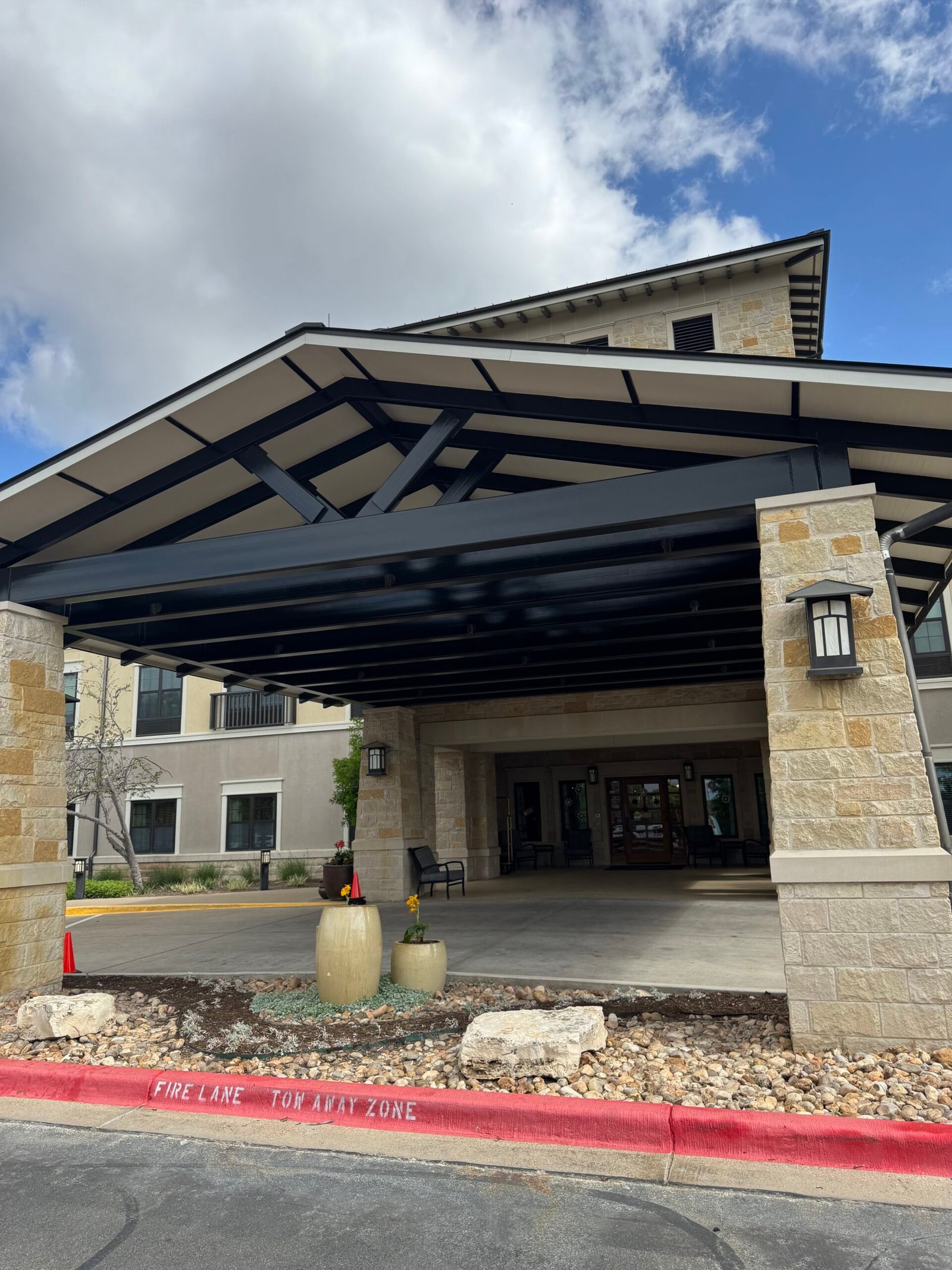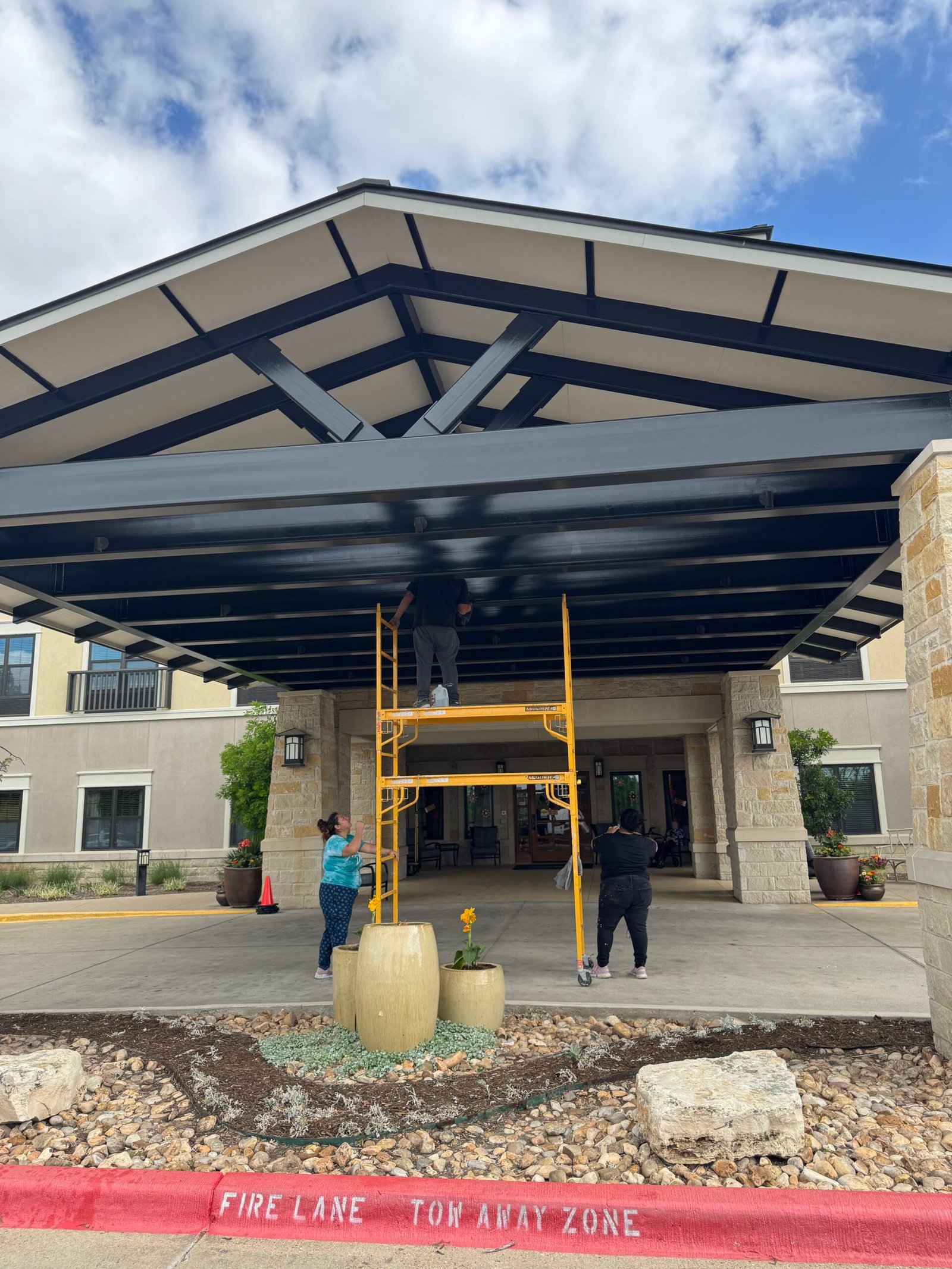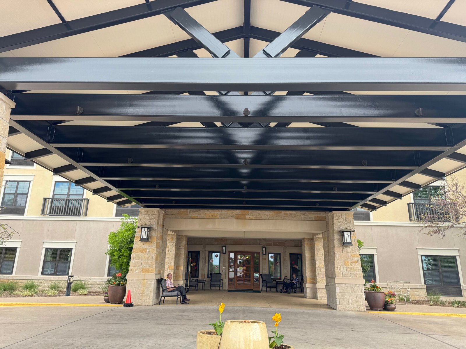 The entrance canopy at this senior housing facility was overdue for a refresh. Over time, the structure had lost its original color and sheen, with visible rust in several areas, leaving it looking worn and faded.